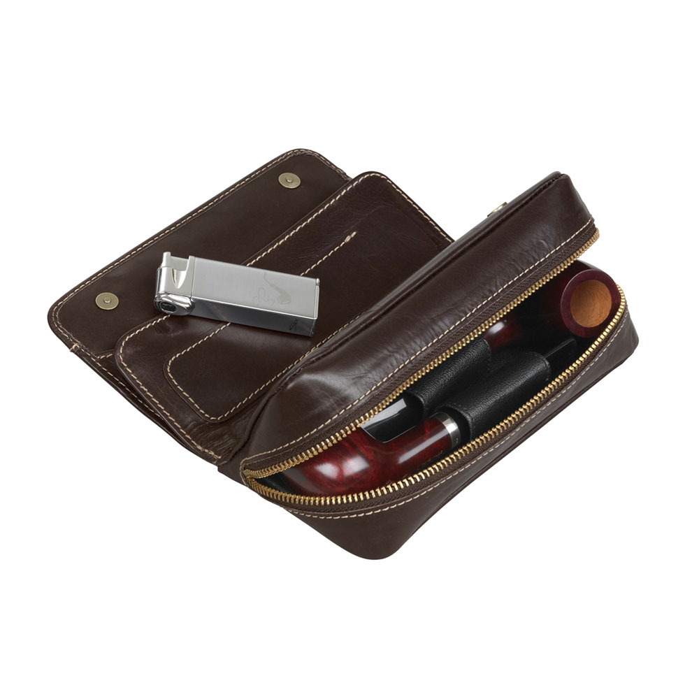 2er Pfeifentasche Dublin Leder braun mit Überschlag
