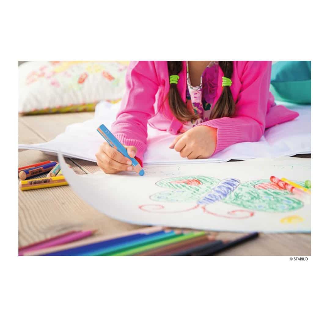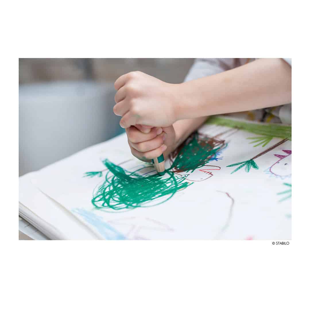 Mit ihrem extrem dicken Durchmesser haben sie eine Form, die schon ganz kleine Kinder gut handhaben können. Auch ihre bruchsichere Mine trägt dazu bei, dass die Stifte wirklich besonders lange halten – sie können auch mal herunterfallen, ohne dass es Schäden gibt. Beim Malen oder Ausmalen großer Flächen sind die Stifte eine große Hilfe und man kann auch mal so richtig doll draufdrücken, das tut ihnen nicht weh.