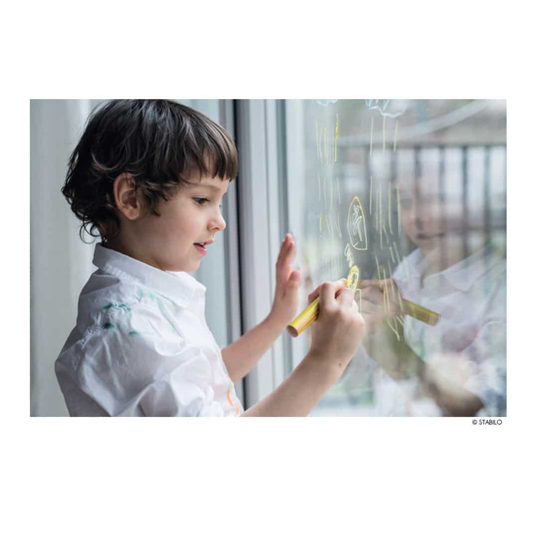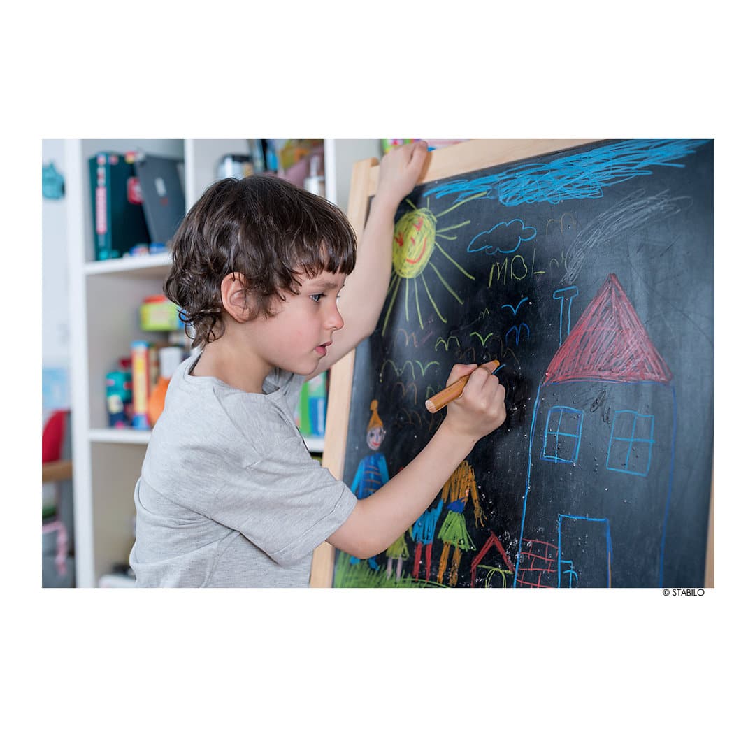 Die Woody Farbstifte eignen sich auch für das Malen auf unterschiedlichen Untergründen: Nicht nur auf Papier oder Pappe, sondern z.B. auch auf Kreidetafeln oder Fensterscheiben. Die sehr intensiven Farben strahlen auch auf dunklen Unterlagen wie Tafeln. Ihre XXL-Mine liefert dabei so viel Farbe wie acht herkömmliche Buntstifte!