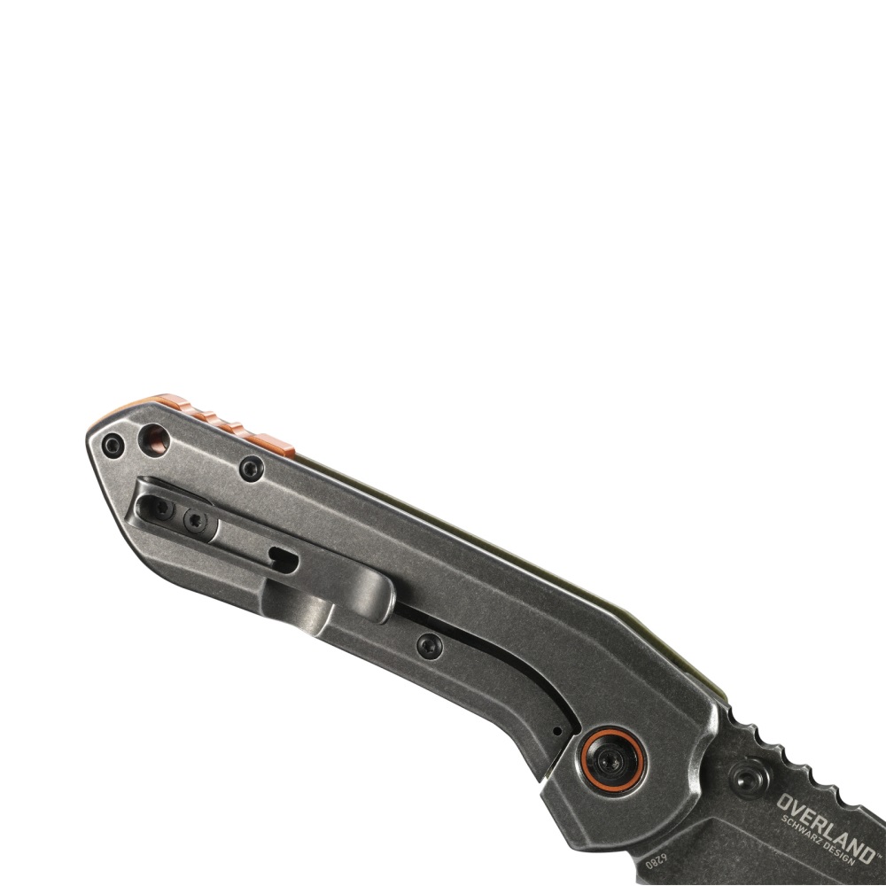 Die Messerversion eines 4×4 — Inspiriert von der Ästhetik des klassischen Offroad- Crawling Vehicle ist das Overland ™ Outdoor-Klappmesser für den Offroad-Einsatz konzipiert. Egal, ob sich Ihre Lagerküche kilometerweit entfernt von der Zivilisation auf einem flachen Felsen oder auf einer Picknickbank im Park befindet, dieses Messer eignet sich perfekt zum Schneiden eines am Lagerfeuer gegrilltem Fleischs.