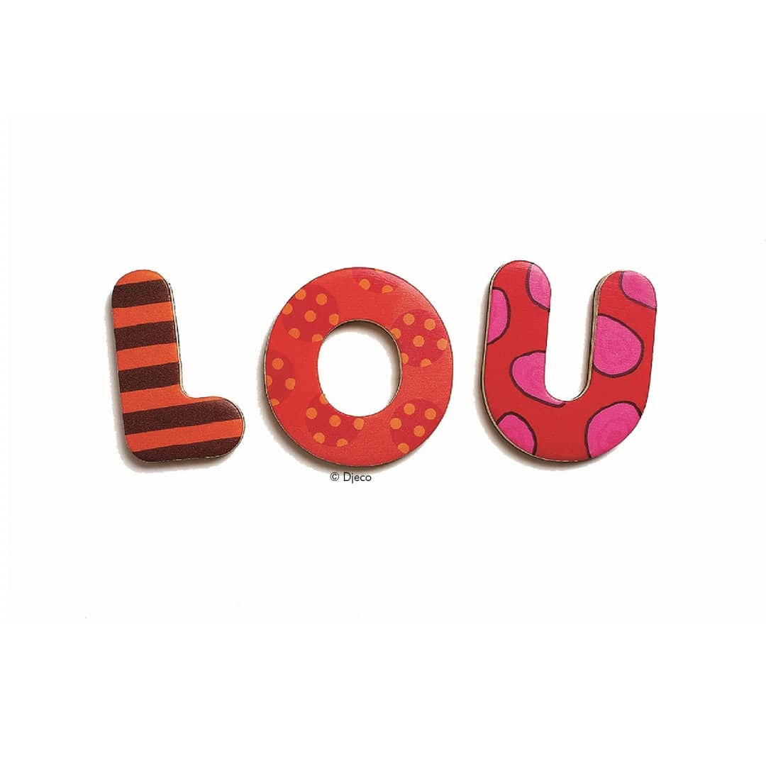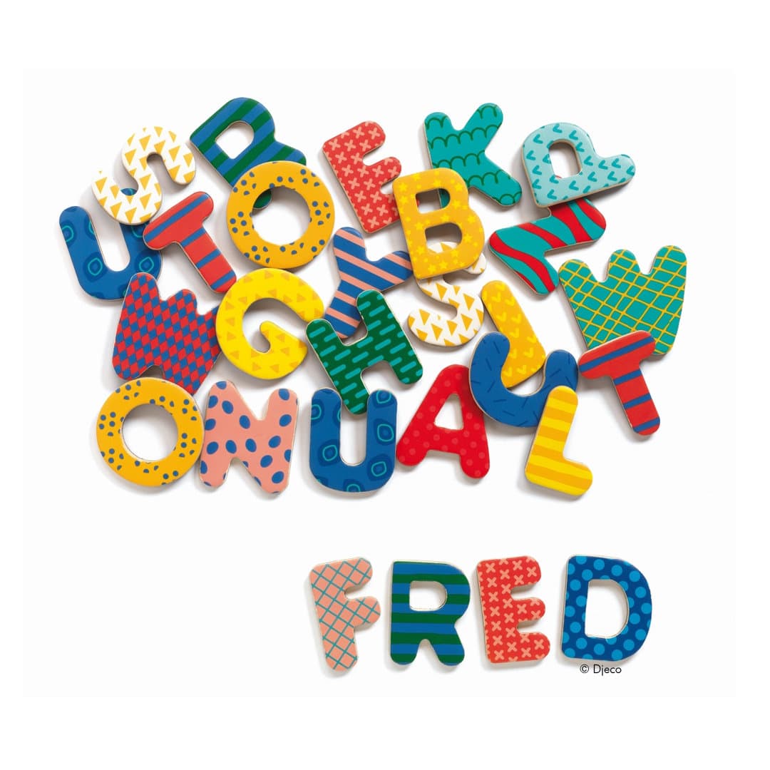 Djeco Magnetspiel aus Holz mit 38 großen, bunten Magnet-Buchstaben.