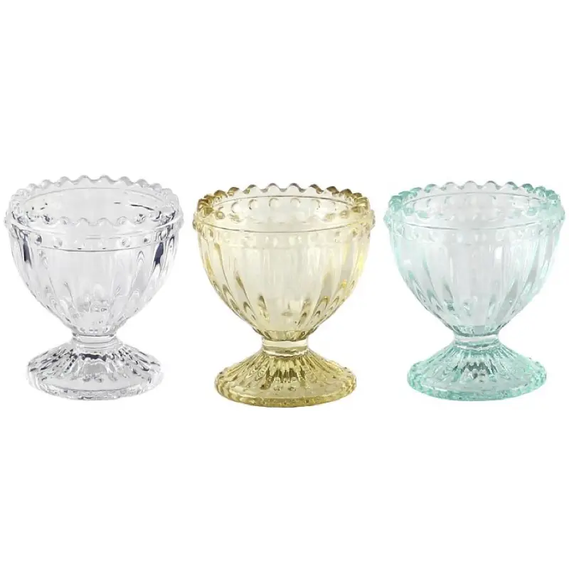 Die Eierbecher Glas 2er Set Felezia von Kaheku mit einer Höhe von 6 cm ist ein wahrlich dekoratives Highlight auf jedem Frühstückstisch. Erhältlich in drei verschiedenen Farben, bieten die Eierbecher die Möglichkeit, Ihren Tisch harmonisch und stilvoll zu dekorieren. Die hochwertige Glasverarbeitung und die aufwendige Struktur verleihen den Eierbechern eine besondere Eleganz.