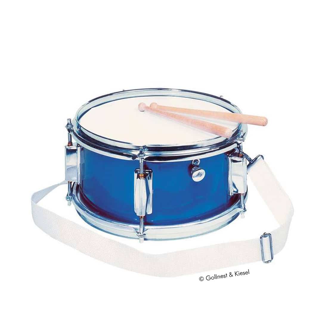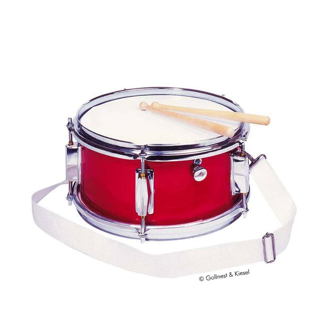 Kleine Spielmannszug-Trommel für Kinder, inkl. 2 kurzen Sticks und Umhänge-Gurt.