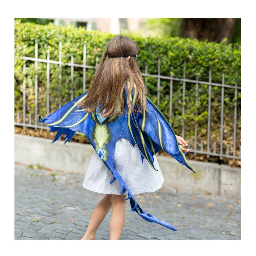 Flexible, weiche Kostümflügel „Juwelen-Drache“ in Blau mit passender Maske und langem Drachenschwanz, in erstklassiger Qualität, zum täglichen Verkleiden, von Great Pretenders.