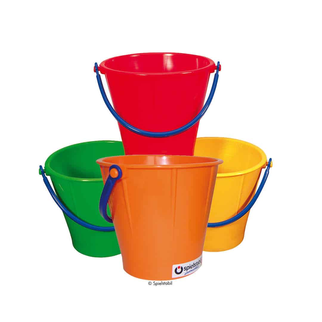 Sandeimer mit stabilem Griff und Litereinteilung, aus schadstofffreiem Kunststoff. Von Spielstabil.