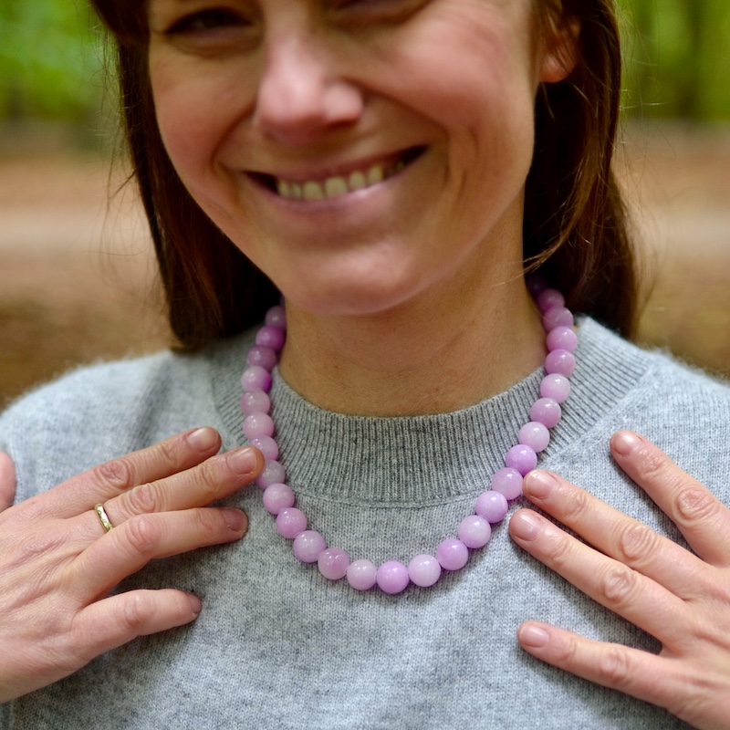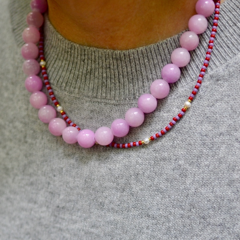 Diese Halskette besteht zu 100 % aus Natursteinperlen.