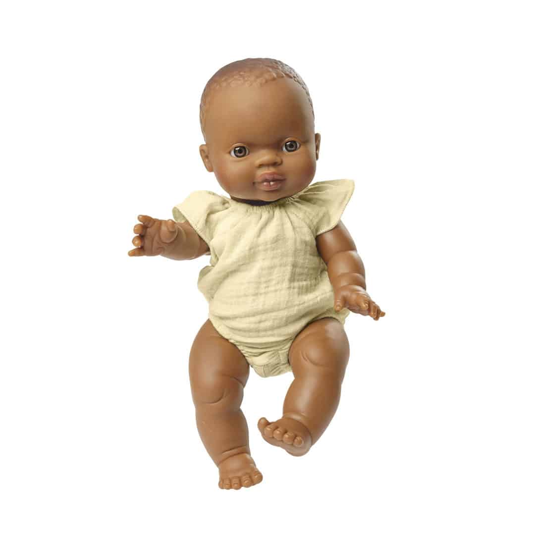 Dieser hübsche Puppen-Body hat einen sanften, naturweissen Ecru-Farbton und wurde gefertigt aus weichem Musselinstoff aus kontrolliert biologischem Anbau.