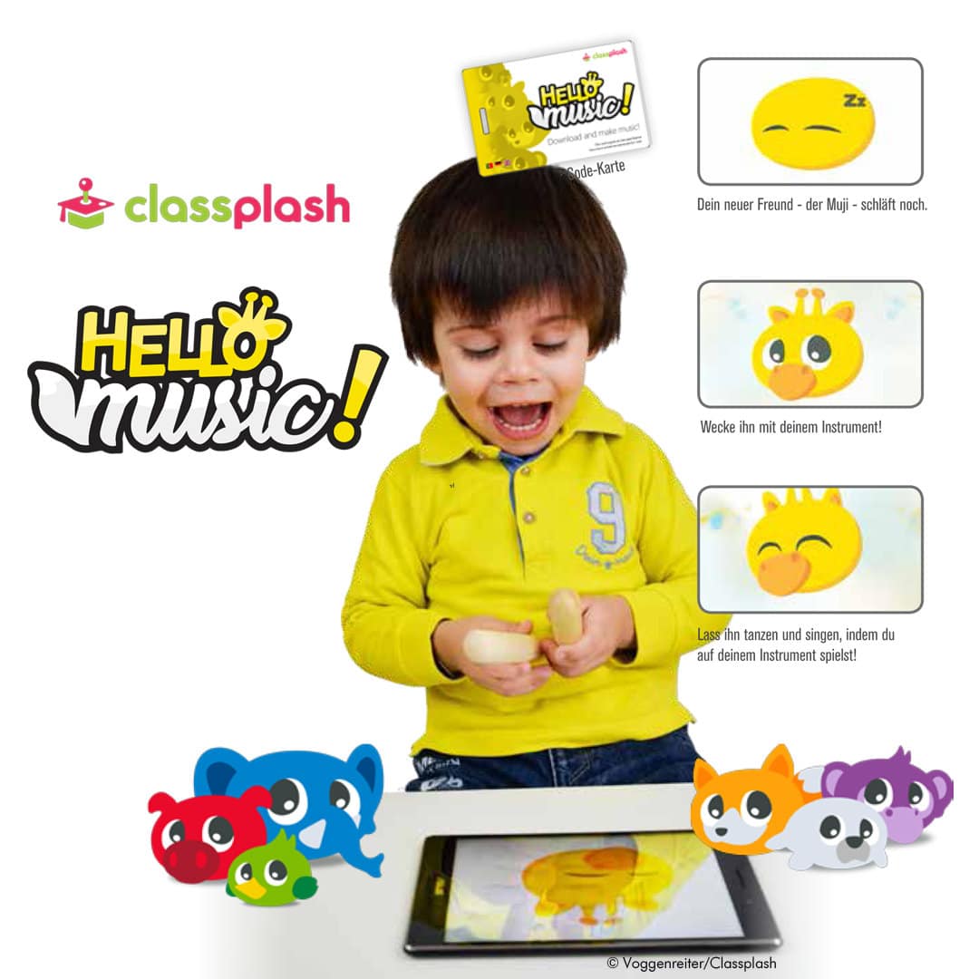 Mit der Classplash-App Hello Music können kleine Kinder auf spielerische, einfache Weise erste Schritte in der Welt der Musik unternehmen – und das ganz ohne Hilfe! Lesen ist nicht erforderlich!