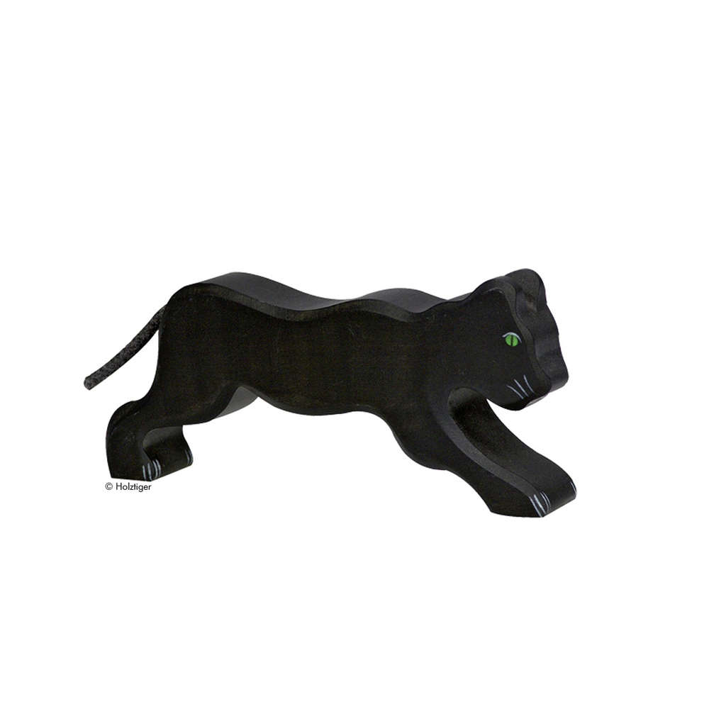 Tierfigur schwarzer Panther, mit Spielgut-Auszeichnung, handgearbeitet aus massivem Holz,