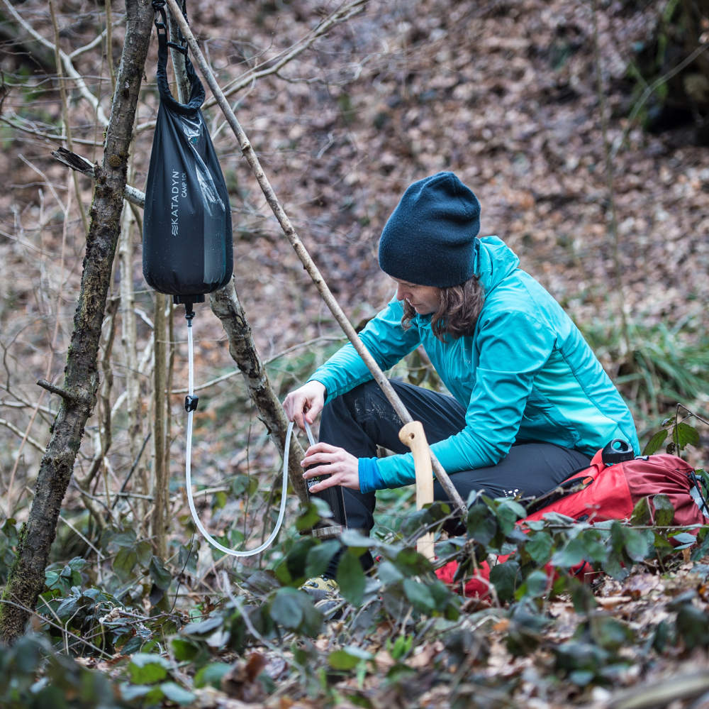 Der faltbare Katadyn Camp 10L Tactical ist der grosse Bruder des Gravity Camp und hat vier zusätzliche Liter Fassungsvermögen. Einfach den praktischen Wassersack füllen, aufhängen und entspannen – denn schon fliessen bis zu 2 Liter pro Minute durch das System, mit dem ganze Gruppen versorgt werden können. Einfacher geht es nicht! Ein leicht zu reinigender Filterschutz macht es möglich, mit dem Base Camp Pro bis zu 1‘500 Liter Wasser aufzubereiten. Das leichte System bietet aber noch mehr: Mit dem separat erhältlichen Adapter wird daraus eine erfrischende Outdoordusche.Outdoordusche.