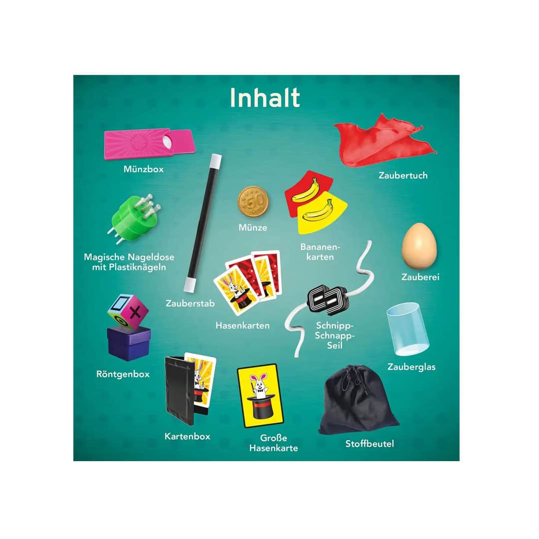 Diese magische Zaubershow ist ein tolles Geburtstagsgeschenk für Kinder ab 6 Jahren und enthält neben Karten, einem Zauberstab und einer Röntgenbox viele tolle Zauberutensilien für 15 Zaubertricks und Illusionen.