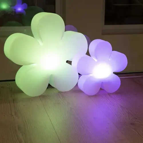 LED Blume SHINING FLOWER ø 40 cm ist eine wunderschöne Motivleuchte, perfekt für den Innen- und Außenbereich. Dabei ist diese Lampe die perfekte stimmungsvolle Beleuchtung für Ihren Garten oder die Terrasse. Sie ist sehr dekorativ aufgrund der schönen Blütenform, zaubert an gemütlichen Abendsunden die richtige Atmosphäre und sorgt so für die optimale Ausleuchtung Ihres Gartens. Die Lampe gibt es in zwei unterschiedlichen Betriebsarten:  Netzbetrieb und RGB LED, der es ermöglicht die Blume in vielen Farben erleuchten zu lassen oder mit einem Solarmodul, das die individuelle Platzierung der Lampe ermöglicht.