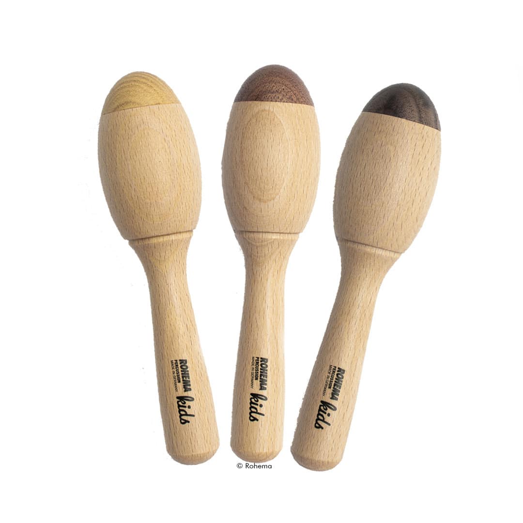Maracas aus hochwertigen, teilweise heimischen Hölzern aus deutscher Herstellung, mit hellem, mittlerem oder dunklem Klang.