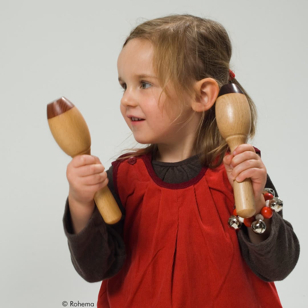 Maracas sind Percussion-Instrumente, Rasseln mit Haltestiel. Sie können schon von den Kleinen problemlos genutzt werden und haben einen schönen weichen Sound. Für Kinder vollkommen ungefährlich, da sie keine rauen Stellen oder Kanten haben.