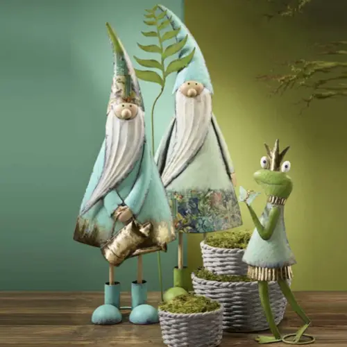 Metall Deko Figur Zwerg SUNNY & BUBI H 77 | 82 cm sind zwei süße Zwerge in schönen bunten Farben. Passend zur schönen Frühlingszeit. Diese Zwerge überzeugen sowohl mit Ihren sommerlichen Farben als auch mit ihren schönen Details. Zum Beispiel dem kleinen Kännchen oder dem schönen Farnzweig in den Händen der Zwerge.