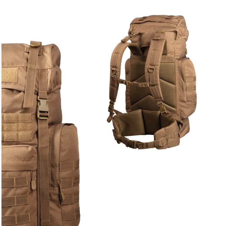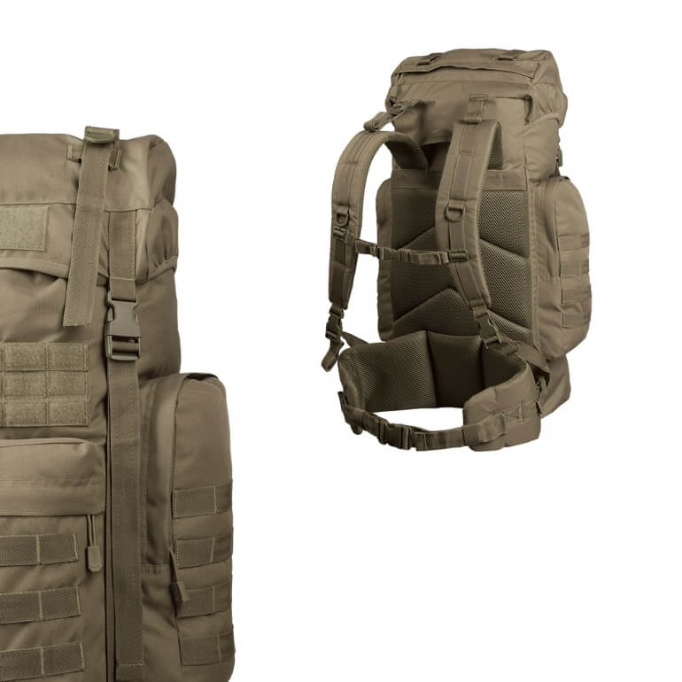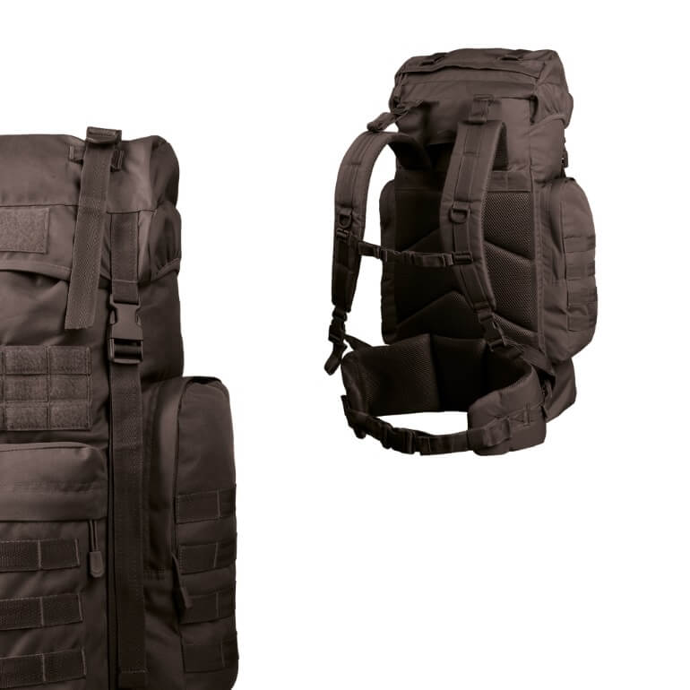 Der BW Kampfrucksack ist eine günstige und hochwertige Nachbildung des Kampfrucksacks der von den Truppen der Bundeswehr benutzt wird. Mit seinen grosszügigen 65 Liter bietet er mehr als ausreichend Stauraum für mehrtägige Einsätze, während die externen Befestigungsgurte und Ösen für das Anbringen von zusätzlichem, grossen Ausrüstungsstücken gedacht sind. Da es sich um einen Mehrtagesrucksack handelt, können die Trageriemen und Hüftgurt individuell auf den Träger eingestellt werden. Das erhöht den Tragekomform und Stabilität beim Tragen auch in unwegsame Gelände.