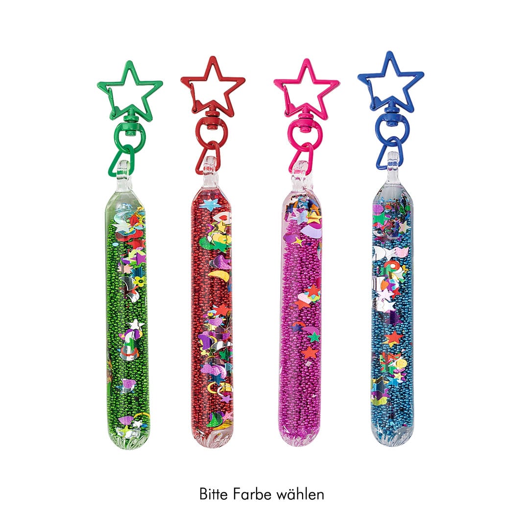Kleiner Liquid-Zauberstab in verschiedenen Farben, mit Konfettiglitter als Schlüsselanhänger,