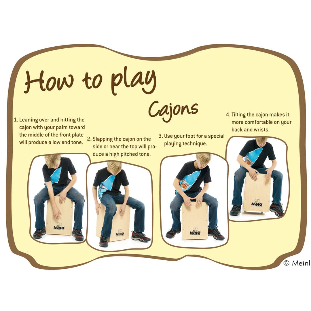 Die Artikelfotos veranschaulichen die Spielweise auf dem Cajon.