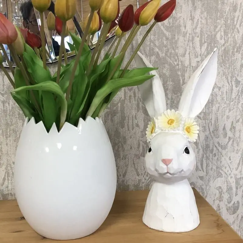 Beide Osterdeko Hasenbüste Werner Voss weiß harmonieren perfekt miteinander und lassen sich ideal mit weiteren schönen Osterdekorationen aus unserem Shop kombinieren. Durch ihre stilvolle Präsenz und liebevolle Gestaltung schafft Osterdeko Hasenbüste Rosy & Daisy Werner Voss eine festliche Atmosphäre und machen jede Osterdekoration zu einem echten Highlight.