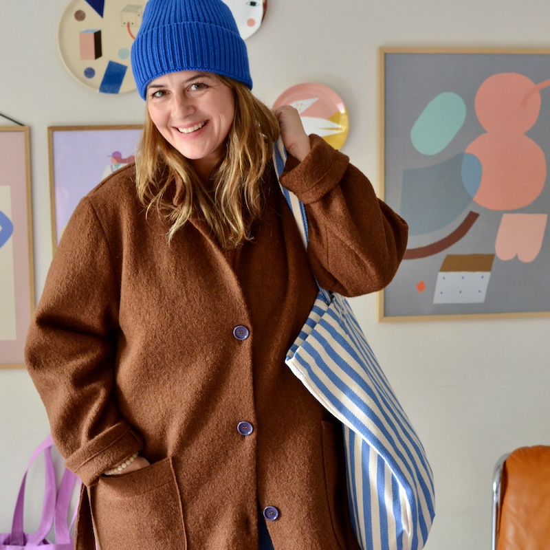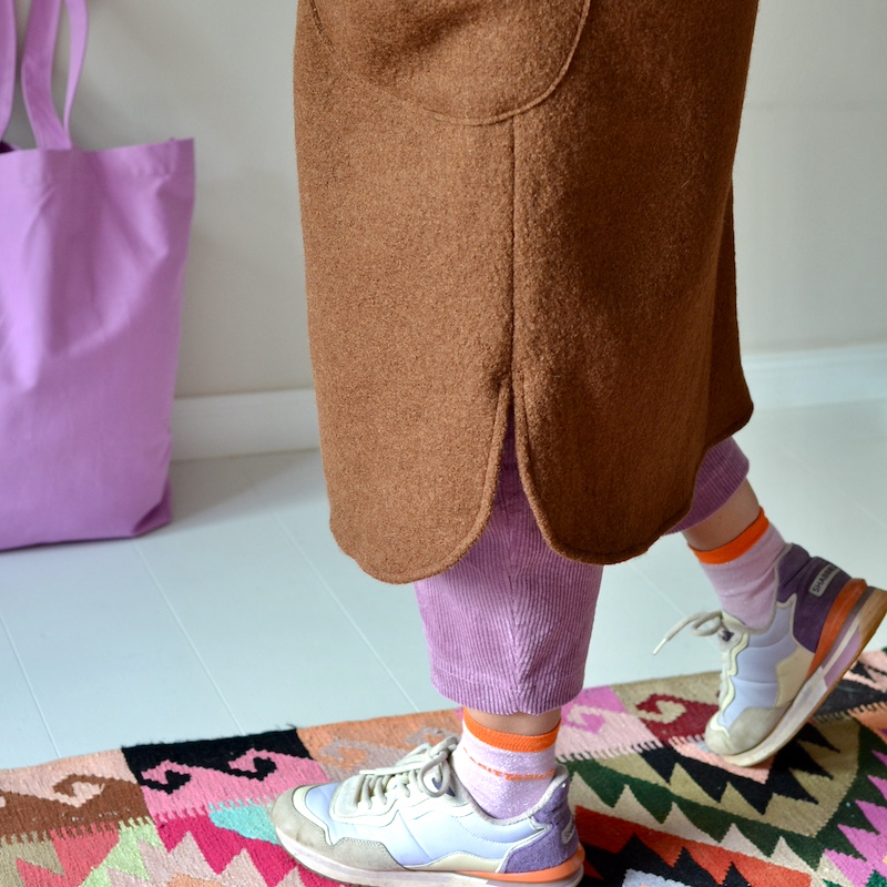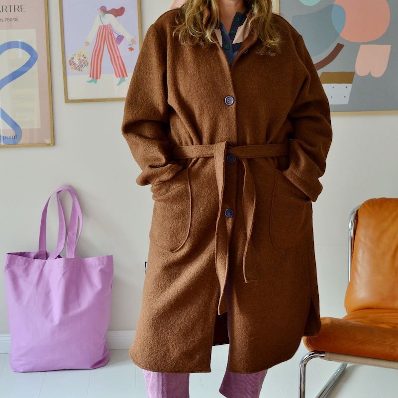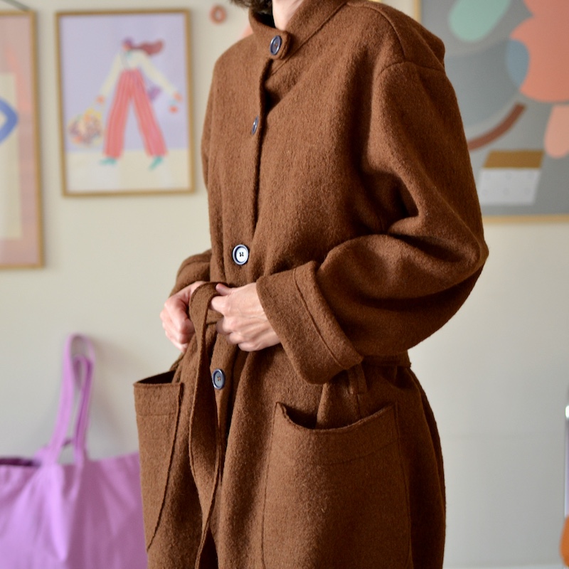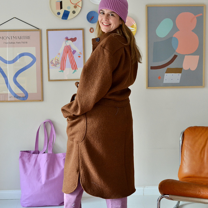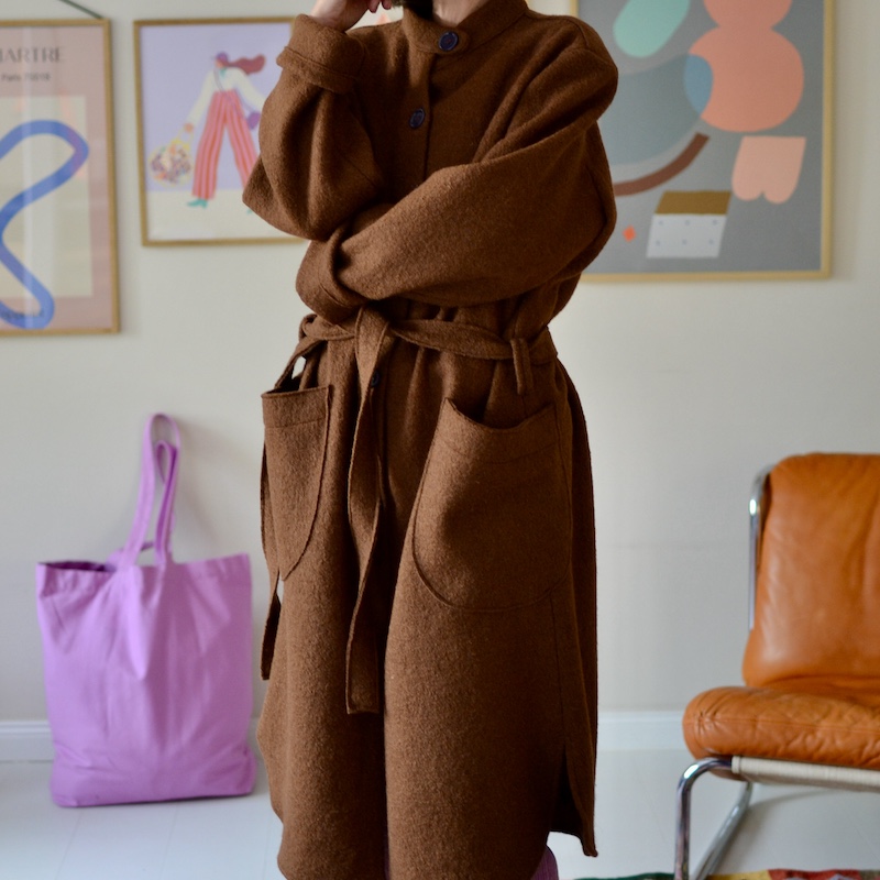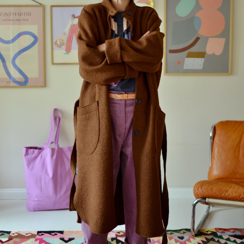 Die Schultern sind bewusst überschnitten und die Ärmel fallen lang aus – so ist die Größe variabel und der Mantel passt mehreren Größen gleichzeitig. Sie sehen auch umgekrempelt super aus.