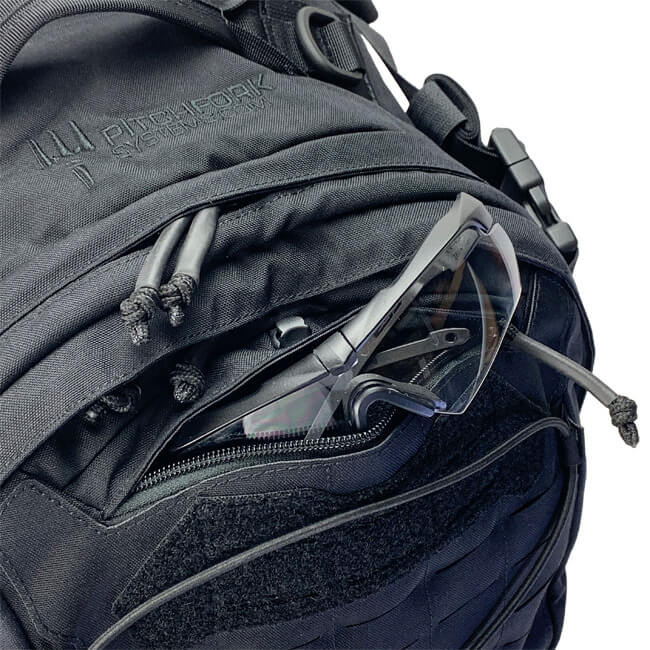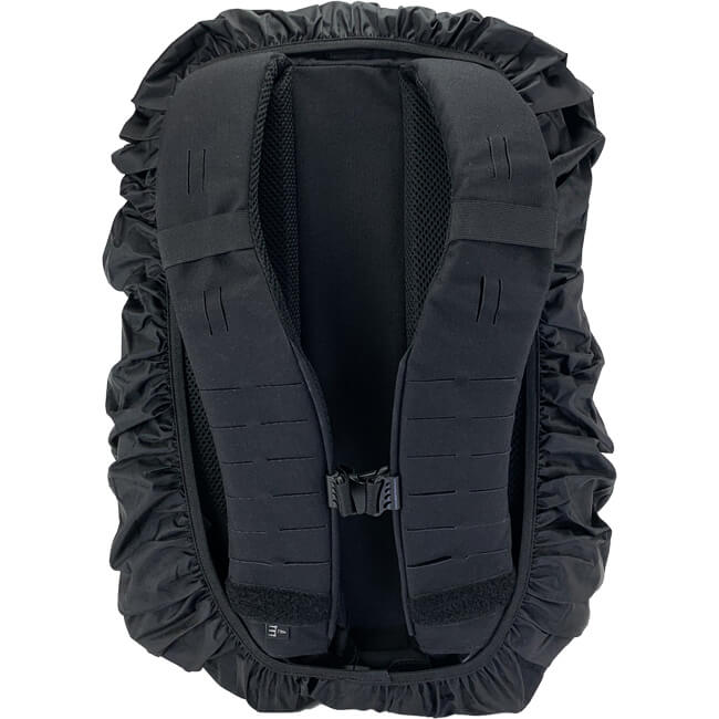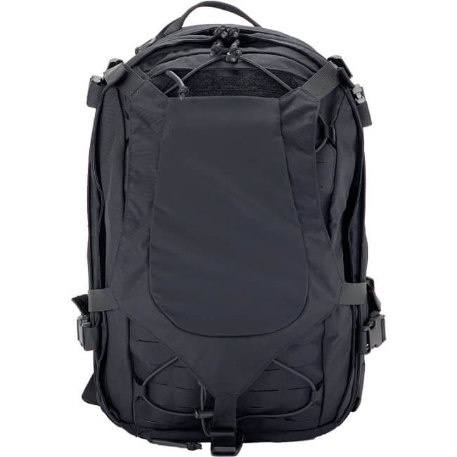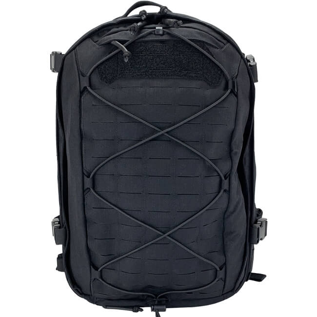 Eine große lasergeschnittene Oberfläche ermöglicht die Installation von Taschen auf Basis des MOLLE-Systems auf dem Rucksack, um dessen Kapazität weiter zu erweitern. Optional wird die gesamte Rückseite mit einer Shock-Cord im Zick-Zack-Verfahren versehen, wodurch ein Netz für leichte Gegenstände wie eine Jacke entsteht. Auf der Oberseite wird es von einem offenen Haken an Ort und Stelle gehalten, und auf der Unterseite kann die Shock-Cord durch eine Öse geschlungen und mit einem Kordelstopper befestigt werden.