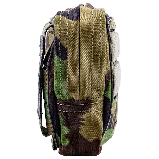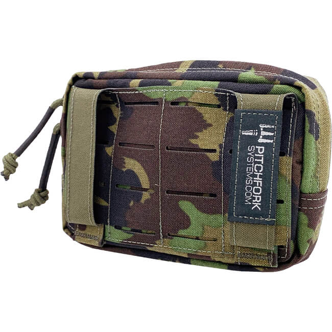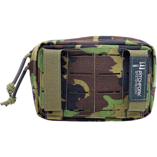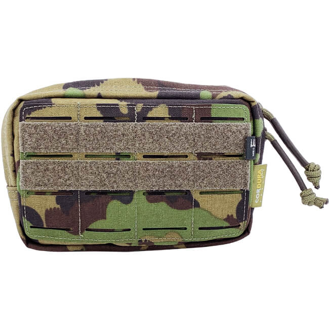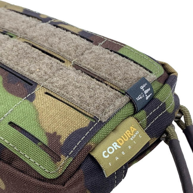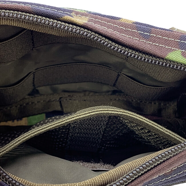 Die Horizontal Utility Pouch Small verfügt aussen über eine MOLLE System Oberfläche sowie zwei Streifen Klett für Patches. Innen finden sich auf der einen Seite zwei übereinander verlaufende Reihen mit elastischen Schlaufen und auf der anderen eine Netztasche, die sich mittels Klett vertikal unterteilen lässt. Damit lässt sich eine ganze Menge Zubehör sicher verstauen.