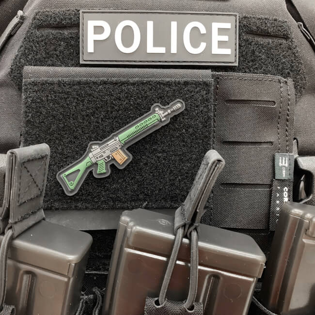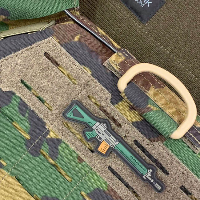 Der SG550 Rifle Patch von Pitchfork ist aus weichem PVC, auf der Rückseite am Patch ist eine Klettfläche.