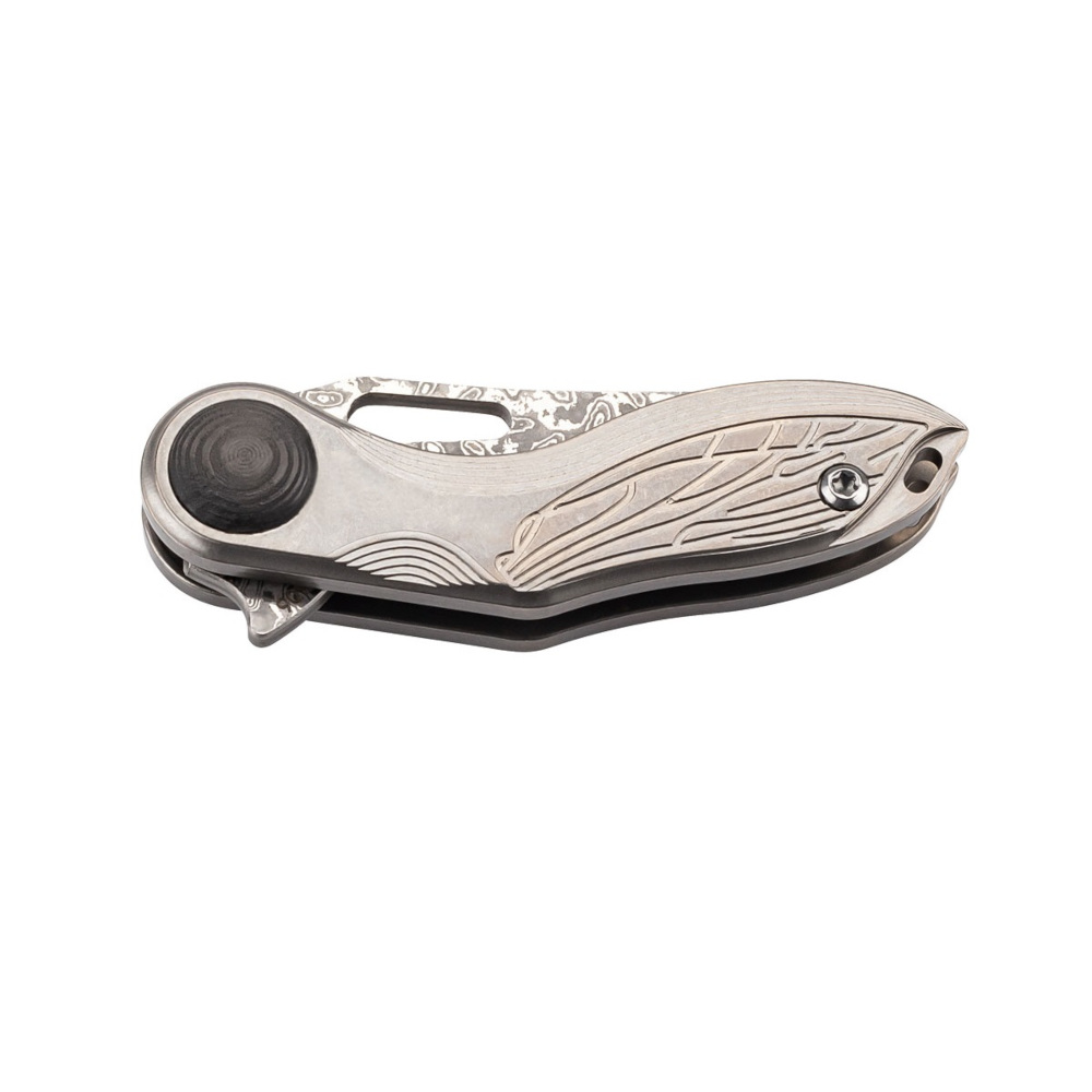 Klein aber fein! Das Mini Damaszener weiss trotz seiner geringen Grösse zu überzeugen. Die 67- lagige Damaszenerklinge kann mittels Flipper oder Klingendurchbruch geöffnet werden. In der