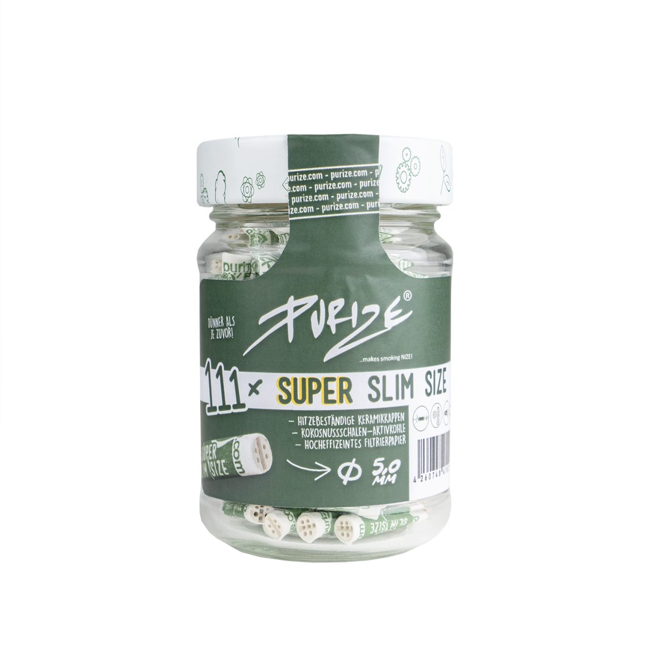 Purize Aktivkohle Filter-Tips SUPER Slim im Glas 100 Stk. white – 5 mm