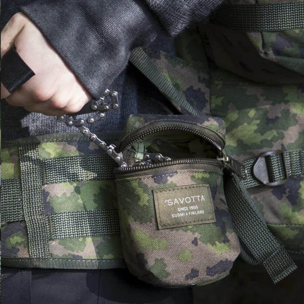 Die klei­ne Uni­ver­sal­ta­sche von Savot­ta, die ursprüng­lich für die fin­ni­schen Streit­kräf­ten ent­wi­ckelt wur­de und dort auch zum Ein­satz kommt. Sie ist geeig­net für klei­ne Gegen­stän­de wie Kom­pass, Waf­fen­rei­ni­gungs­kits, Ersatz­bat­te­rien und vie­les mehr. Der Ein­weg- Reiss­ver­schluss bie­tet schnel­len und unge­hin­der­ten Zugriff zum Inhalt der Tasche. Mit dem MOLLE- kom­pa­ti­ble Befes­ti­gungs­sys­tem lässt sich die Uni­ver­sal­ta­sche prak­tisch über­all befestigen.