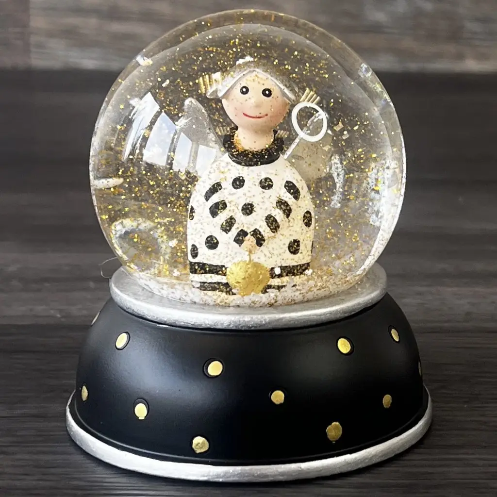 Entdecken Sie die zauberhafte Schneekugel Engel LOTTA von Pape Kunstgewerbe – ein wahrhaft himmlisches Deko-Highlight für Ihr Zuhause! Diese exquisite Schneekugel ist in verschiedenen Ausführungen erhältlich und begeistert mit einer harmonischen Farbpalette aus Weiß, Schwarz, Gold, Silber und Rot. Mit einer Höhe von 9 cm und einem Durchmesser von 8 cm ist sie der perfekte Blickfang auf Ihrem Tisch oder Regal.