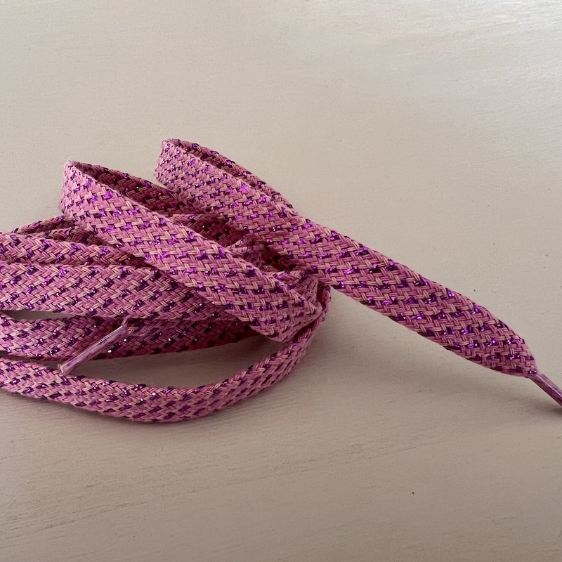 Hübsche Glitzer-Schnürsenkel, geflochten aus Baumwolle und Lurex, mit denen du deinen Sneakern oder Schnürschuhen einen fröhlichen Akzent gibst.