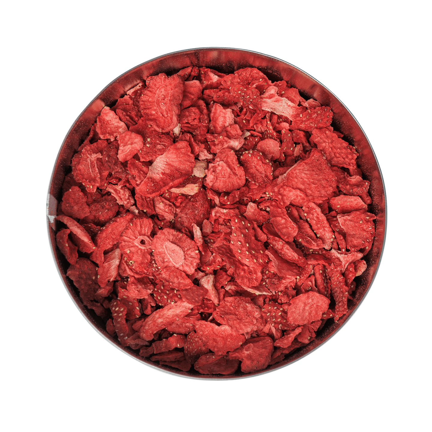 Durch das Gefriertrocknen bleiben am meisten Nährstoffe und Aromen der frischen Erdbeere erhalten. Gefriertrocknen gilt als eine der schonungsvollsten Konservierungsmethoden.