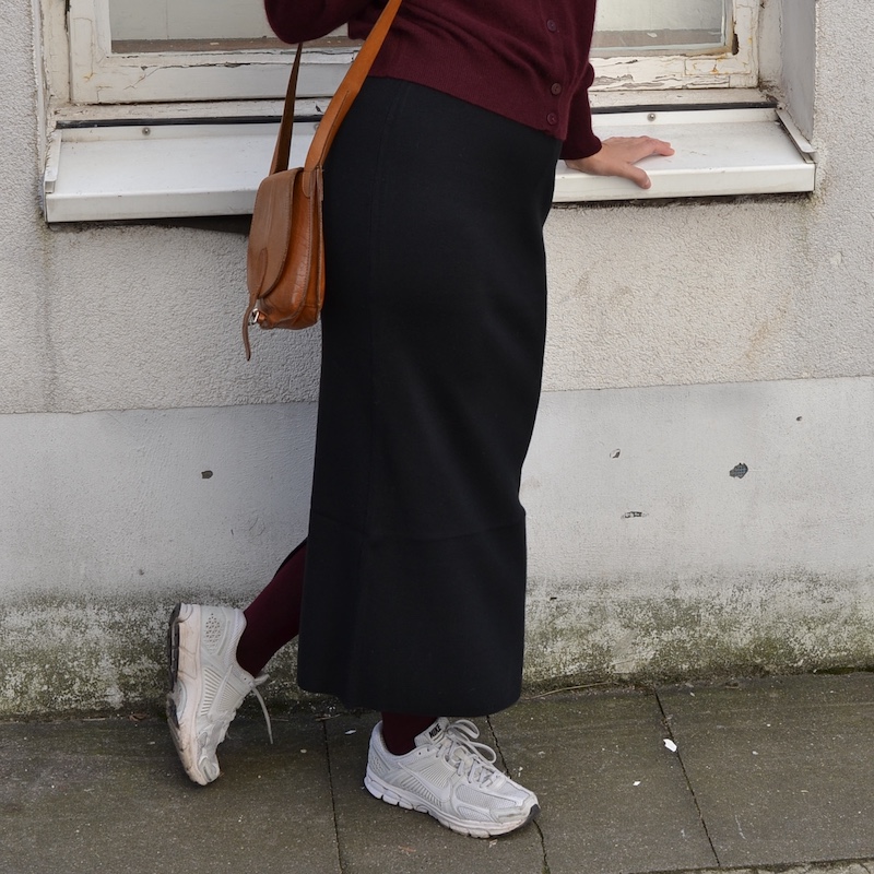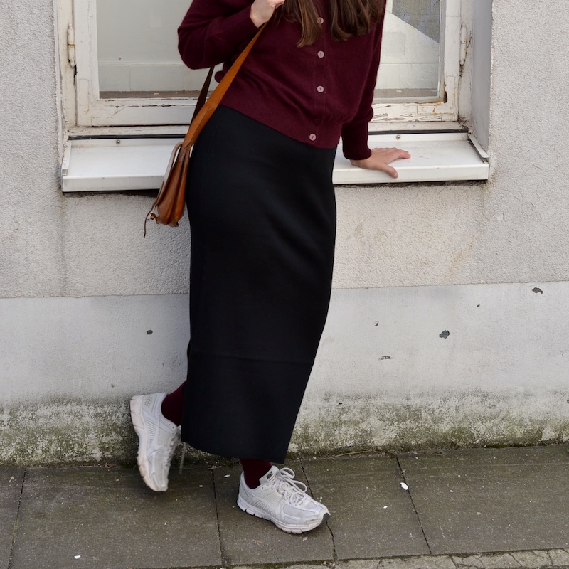 Toller Midirock in A-Linie mit bequemem Bund und dekorativem Schlitz hinten. Der elastische Bund sorgt für eine außergewöhnlich bequeme Passform. Du möchtest ihn gar nicht mehr ausziehen.