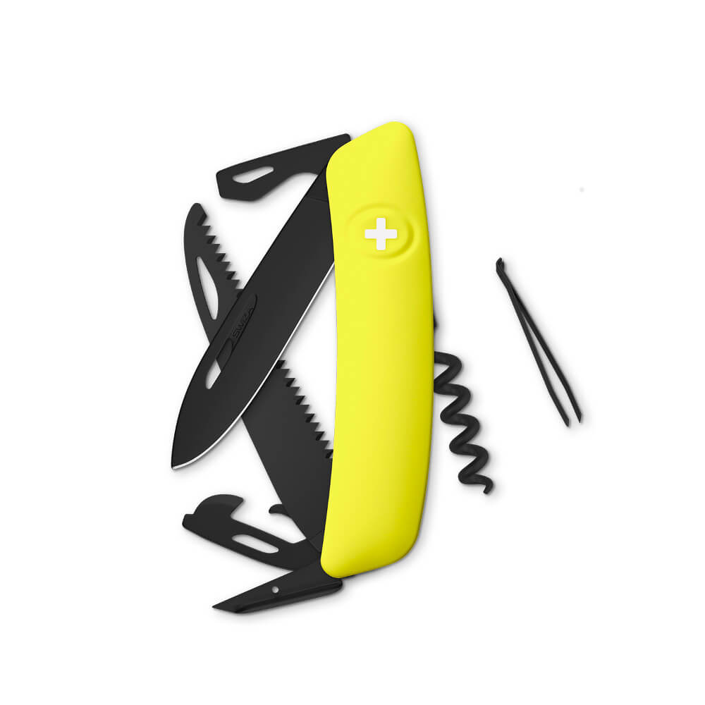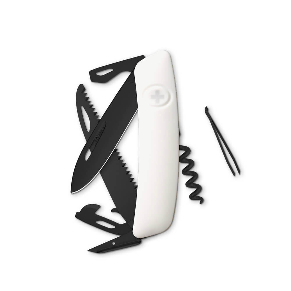 Das faszinierende neue Schweizer Taschenmesser von SWIZA, das alle Blicke auf sich zieht: Das komplett schwarze SWIZA ALLBLACK mit einer hoch widerstandsfähigen tiefschwarzen Hightech-Beschichtung, revolutionärem 360° Design und robuster Anti-Rutsch-Oberfläche. Dank der leicht gekrümmten Form des Messers sind alle Werkzeuge leicht zugänglich und die durchgehenden Ausstanzungen ermöglichen Rechts- und Linkshändern ein einfaches Öffnen der Werkzeuge.
