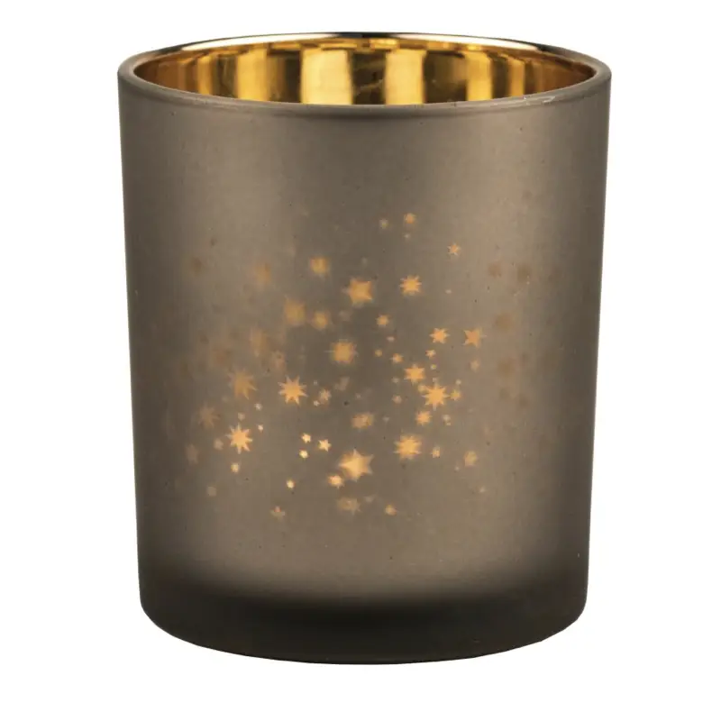 Teelichtglas Weihnachten STERNE Räder braun gold H 10 cm