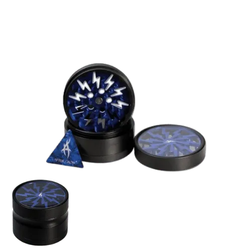 Der Thorinder ist ein sehr hochwertig verarbeiteter Premiumgrinder von After Grow und besteht aus 4 Teilen . Der transparente Deckel schließt magnetisch und hat einen Aufdruck. Die CNC-gefrästen Zähne haben einen Diamantenschliff und sind ebenfalls blau eingefärbt. Der Thorinderkommt in einer lässigen Geschenkbox und enthält auch eine Pollenschaufel.