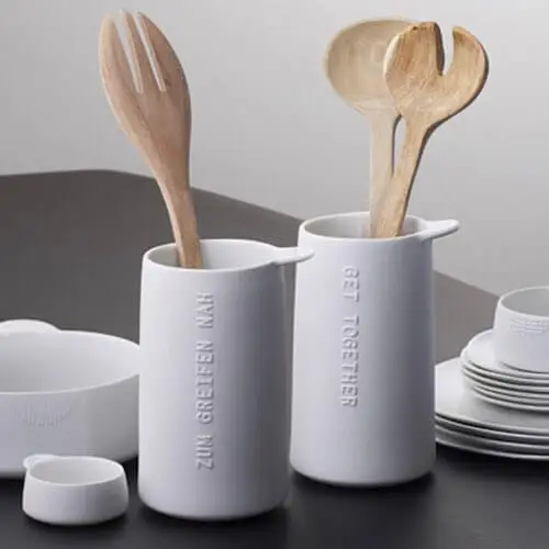 Verschönern Sie Ihre Küchenzeile mit diesem praktischen Küchenhelfer und kombinieren Sie ihn mit anderen passenden Artikeln aus dem Hause Räder Design. Bringen Sie Stil und Eleganz in Ihre Küche – mit dem Kochlöffelhalter von Räder Design!