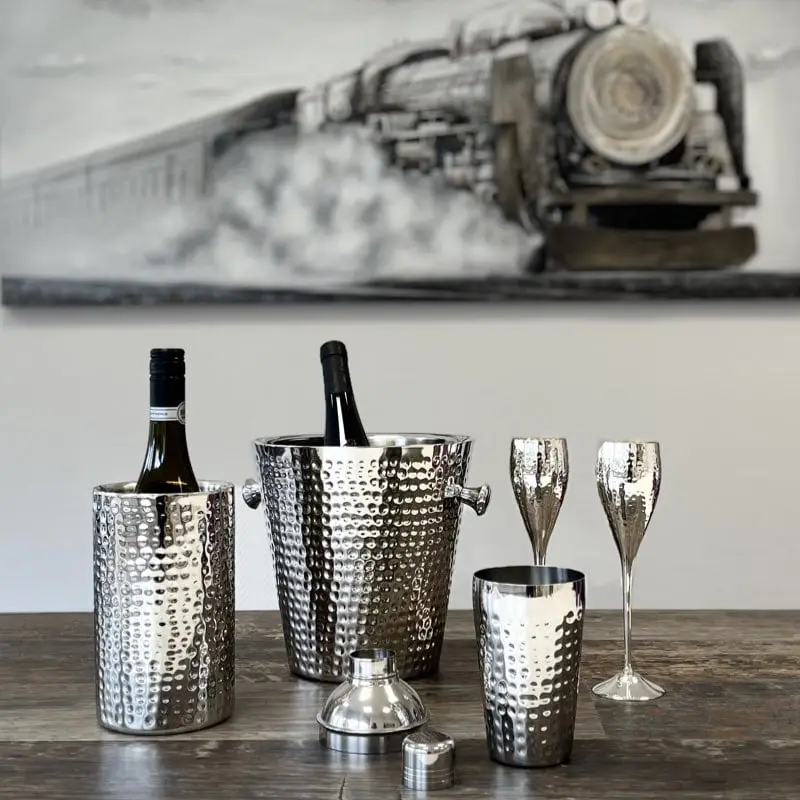 Weinkühler Edelstahl BRUNA Kaheku H 20 cm besitzt eine sehr hochwertige und besonders edle Optik. Durch die gehämmerte Oberfläche bekommt er ein absolut außergewöhnliches Design mit dem er auf jeder Tafel und zu jeder Party ein echtes Dekohighlight ist. Dabei besteht der Kühler aus strapazierfähigem Edelstahl, der Langlebigkeit und Leichtigkeit garantiert. Der Weinkühler Edelstahl BRUNA Kaheku H 20 cm läßt sich perfekt mit dem passenden Sektkühler und dem dazu gehörenden Cocktail Shaker zu einem perfekten Ensemble kombinieren.
