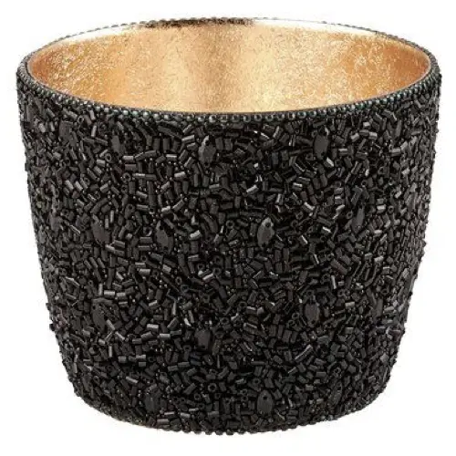 Windlicht MADRAS GiftCompany Perlen schwarz H 8 cm – ein schönes Windlicht besetzt mit kleinen schwarzen Perlen und Steinen. So ist dieses Windlicht ein absoluter Eyecatcher auf jeder Tafel.