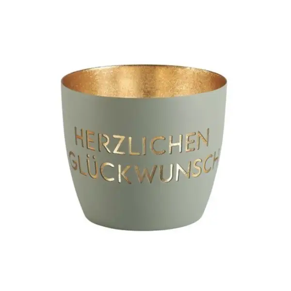 Windlicht MADRAS Herzlichen Glückwunsch GiftCompany H 8 cm – dieses Wohlfühlen-Windlicht passt überall hin und erstrahlt in edlem Gold im Kerzenschein. Es ist ein wunderbares Geschenk für einen lieben Menschen und besonders schön in Kombination mit unseren anderen passenden Windlichtern.
